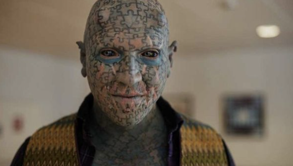 Paul Lawrence, known as The Enigma, is a performer with a full-body puzzle tattoo. Over 200 tattoo artists worked on his design, covering him in bold puzzle pieces from head to toe. Beyond tattoos, he’s a sideshow performer, musician, and actor, making appearances worldwide. His unforgettable look and eccentric stage presence have made him a symbol of how tattoos can push artistic boundaries to the extreme.